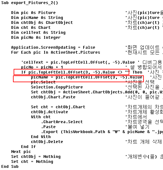 picName = pic.TopLeftCell.Offset(3, -5).Value '사진 이름 추출 (기자재관리번호)