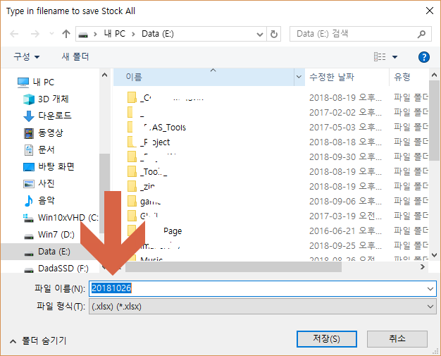 5. 결과를 저장할 엑셀 화일 이름및 위치 지정